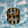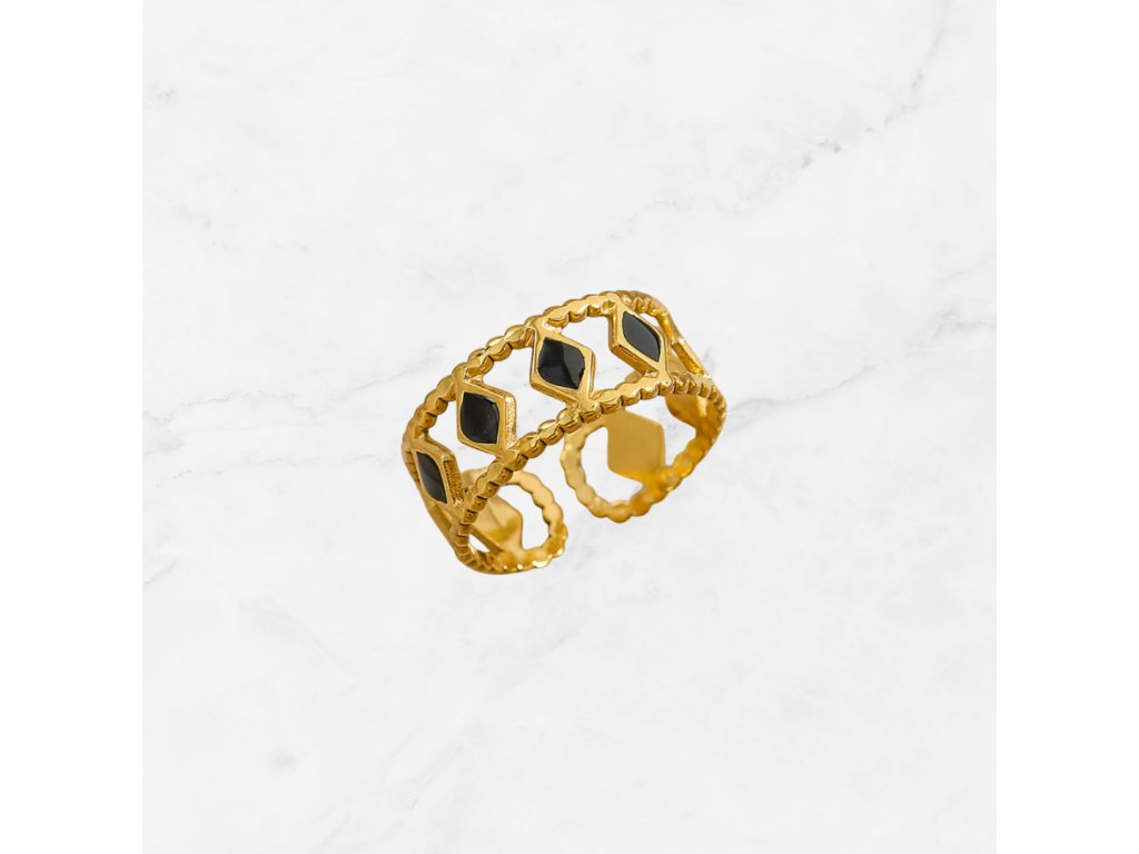 Krásný pozlacený prsten z nerezové oceli s černými detaily.